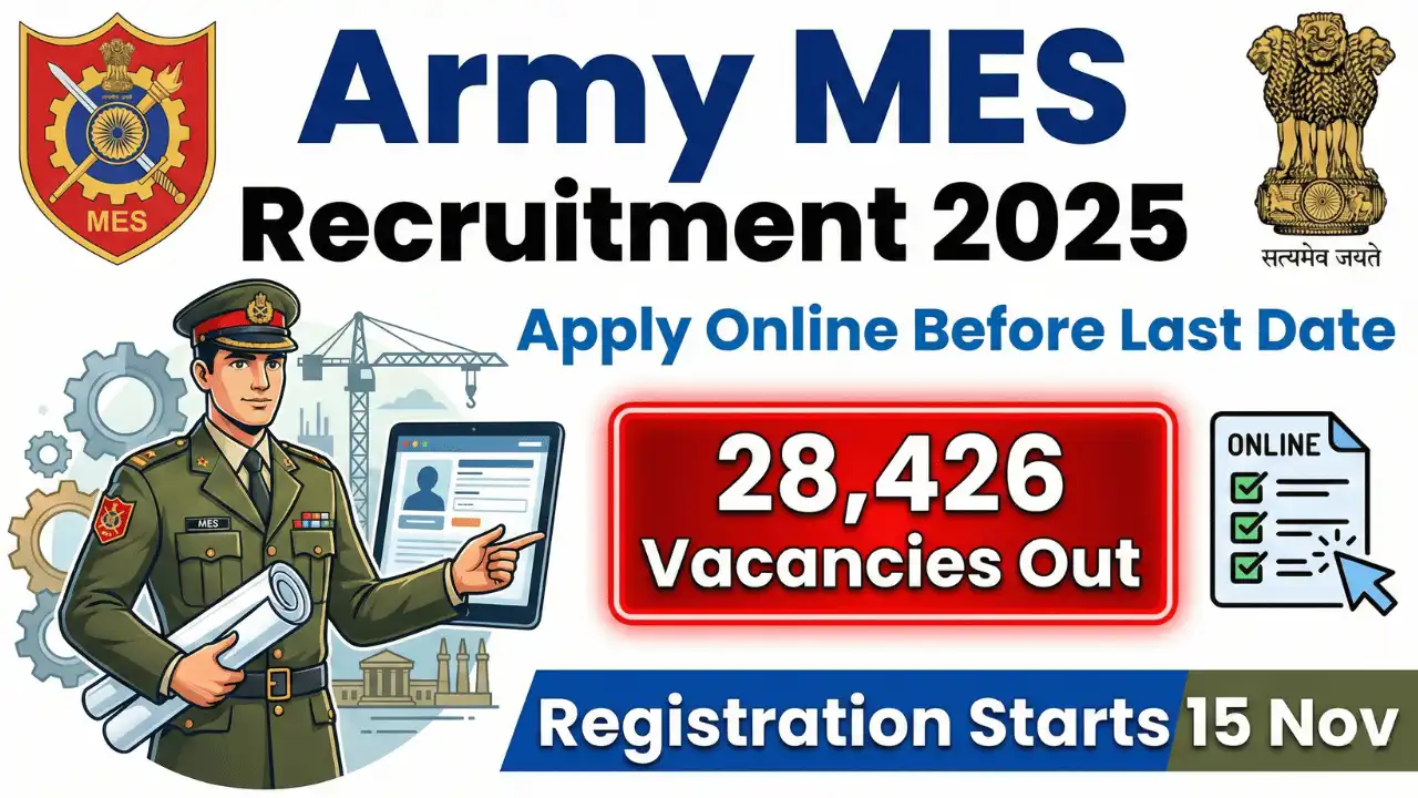 The Army MES Recruitment 2025 has created a wave of interest across the country, especially among young candidates looking for a stable government job. With 28,426 vacancies announced under the Military Engineer Services department, this recruitment drive is one of the biggest opportunities of the year. From technical roles to clerical and administrative posts, the notification covers a wide range of job profiles suitable for different qualifications. The online application window will be open from 15 November 2025 to 1 December 2025, giving candidates enough time to apply through the official website mes.gov.in.